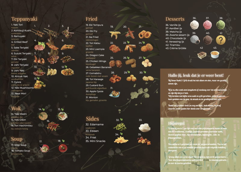 Ons advies is 5 gerechten per ronde per persoon te bestellen. Pas na het consumeren van al uw bestelde gerechten kunt u de volgende bestelling doorgeven. Graag willen we u erop wijzen dat verspilling niet wordt gewaardeerd. Voor elke on-geconsumeerde sushi wordt er €1,00 in rekening gebracht en voor ieder warm gerecht wordt € 3,00 in rekening gebracht.